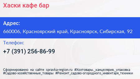 Хаски, кафе-бар по адресу 660006, Красноярский край, Красноярск, Сибирская, 92 в дальнейшем Организация, размещена в следующих категориях: