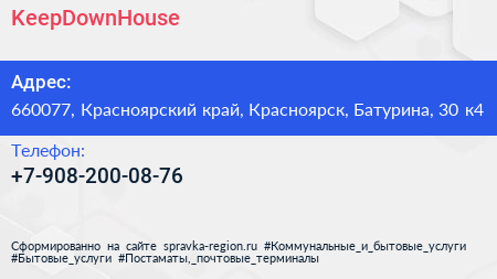 KeepDownHouse по адресу 660077, Красноярский край, Красноярск, Батурина, 30 к4 в дальнейшем Организация, размещена в следующих категориях: