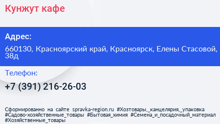 Кунжут, кафе по адресу 660130, Красноярский край, Красноярск, Елены Стасовой, 38д в дальнейшем Организация, размещена в следующих категориях: