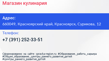 Магазин-кулинария по адресу 660049, Красноярский край, Красноярск, Сурикова, 12 в дальнейшем Организация, размещена в следующих категориях:
