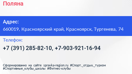 Поляна по адресу 660019, Красноярский край, Красноярск, Тургенева, 74 в дальнейшем Организация, размещена в следующих категориях: