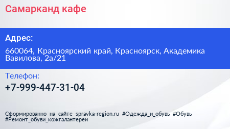 Самарканд, кафе по адресу 660064, Красноярский край, Красноярск, Академика Вавилова, 2а/21 в дальнейшем Организация, размещена в следующих категориях: