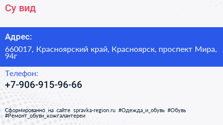 Су-вид по адресу 660017, Красноярский край, Красноярск, проспект Мира, 94г в дальнейшем Организация, размещена в следующих категориях: