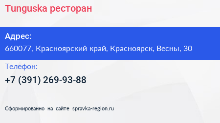 Tunguska, ресторан по адресу 660077, Красноярский край, Красноярск, Весны, 30 в дальнейшем Организация, размещена в следующих категориях: