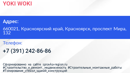 YOKI WOKI по адресу 660021, Красноярский край, Красноярск, проспект Мира, 132 в дальнейшем Организация, размещена в следующих категориях:
