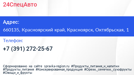 24СпецАвто по адресу 660135, Красноярский край, Красноярск, Октябрьская, 1 в дальнейшем Организация, размещена в следующих категориях: