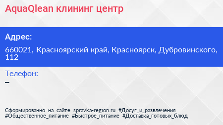 AquaQlean, клининг-центр по адресу 660021, Красноярский край, Красноярск, Дубровинского, 112 в дальнейшем Организация, размещена в следующих категориях: