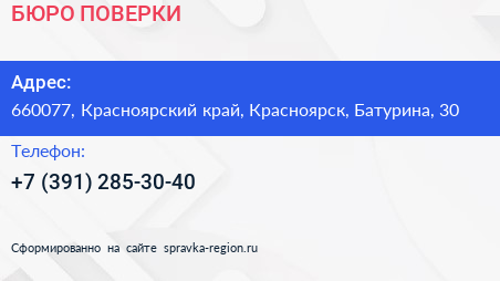БЮРО ПОВЕРКИ по адресу 660077, Красноярский край, Красноярск, Батурина, 30 в дальнейшем Организация, размещена в следующих категориях:
