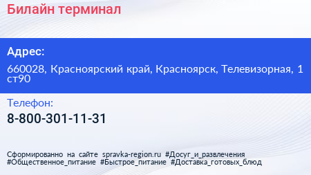 Билайн, терминал по адресу 660028, Красноярский край, Красноярск, Телевизорная, 1 ст90 в дальнейшем Организация, размещена в следующих категориях: