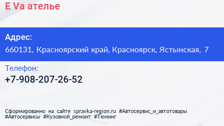 E.Va, ателье по адресу 660131, Красноярский край, Красноярск, Ястынская, 7 в дальнейшем Организация, размещена в следующих категориях: