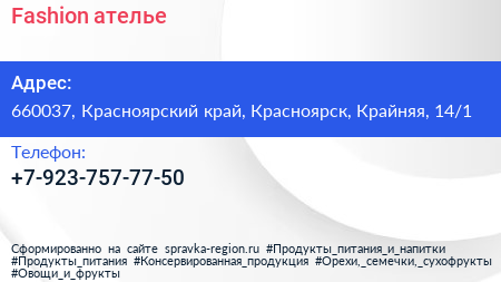 Fashion, ателье по адресу 660037, Красноярский край, Красноярск, Крайняя, 14/1 в дальнейшем Организация, размещена в следующих категориях:
