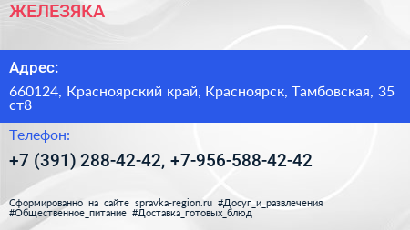 ЖЕЛЕЗЯКА по адресу 660124, Красноярский край, Красноярск, Тамбовская, 35 ст8 в дальнейшем Организация, размещена в следующих категориях:
