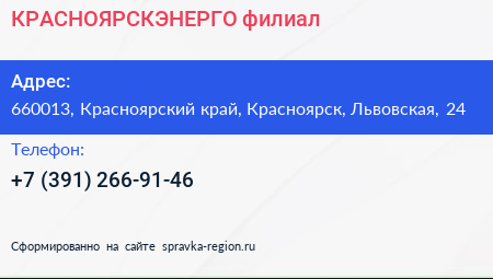 КРАСНОЯРСКЭНЕРГО, филиал по адресу 660013, Красноярский край, Красноярск, Львовская, 24 в дальнейшем Организация, размещена в следующих категориях: