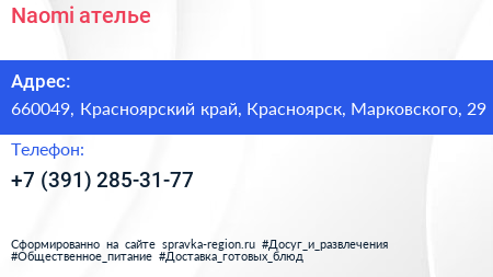 Naomi, ателье по адресу 660049, Красноярский край, Красноярск, Марковского, 29 в дальнейшем Организация, размещена в следующих категориях: