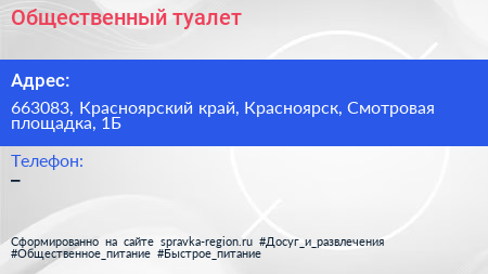 Общественный туалет по адресу 663083, Красноярский край, Красноярск, Смотровая площадка, 1Б в дальнейшем Организация, размещена в следующих категориях: