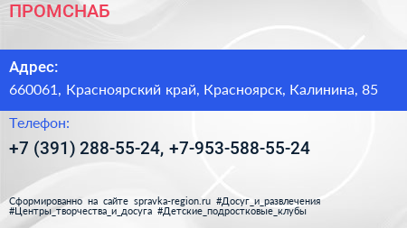 ПРОМСНАБ по адресу 660061, Красноярский край, Красноярск, Калинина, 85 в дальнейшем Организация, размещена в следующих категориях:
