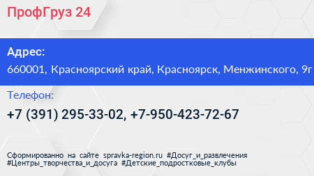 ПрофГруз 24 по адресу 660001, Красноярский край, Красноярск, Менжинского, 9г в дальнейшем Организация, размещена в следующих категориях:
