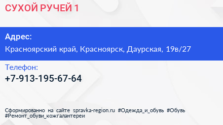 СУХОЙ РУЧЕЙ-1 по адресу Красноярский край, Красноярск, Даурская, 19в/27 в дальнейшем Организация, размещена в следующих категориях: