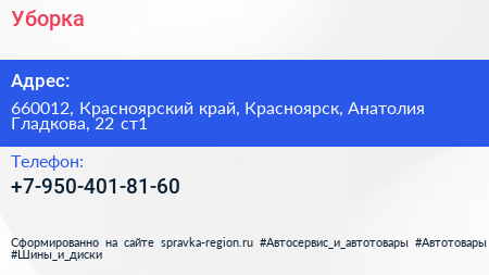 Уборка по адресу 660012, Красноярский край, Красноярск, Анатолия Гладкова, 22 ст1 в дальнейшем Организация, размещена в следующих категориях:
