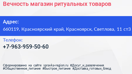 Вечность, магазин ритуальных товаров по адресу 660119, Красноярский край, Красноярск, Светлова, 11 ст3 в дальнейшем Организация, размещена в следующих категориях: