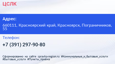 ЦСЛК по адресу 660111, Красноярский край, Красноярск, Пограничников, 55 в дальнейшем Организация, размещена в следующих категориях: