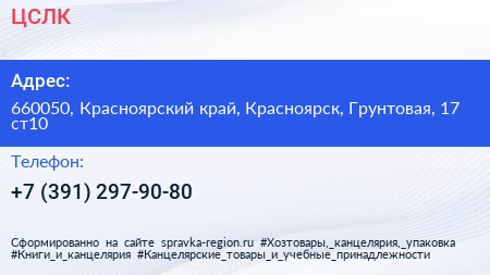 ЦСЛК по адресу 660050, Красноярский край, Красноярск, Грунтовая, 17 ст10 в дальнейшем Организация, размещена в следующих категориях: