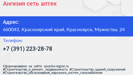 Ангизия, сеть аптек по адресу 660043, Красноярский край, Красноярск, Мужества, 24 в дальнейшем Организация, размещена в следующих категориях: