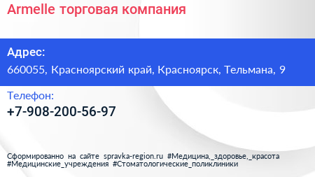 Armelle, торговая компания по адресу 660055, Красноярский край, Красноярск, Тельмана, 9 в дальнейшем Организация, размещена в следующих категориях: