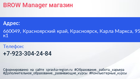 BROW! Manager, магазин по адресу 660049, Красноярский край, Красноярск, Карла Маркса, 95 к1 в дальнейшем Организация, размещена в следующих категориях: