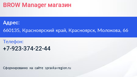 BROW!Manager, магазин по адресу 660135, Красноярский край, Красноярск, Молокова, 66 в дальнейшем Организация, размещена в следующих категориях: