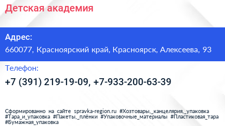 Детская академия по адресу 660077, Красноярский край, Красноярск, Алексеева, 93 в дальнейшем Организация, размещена в следующих категориях:
