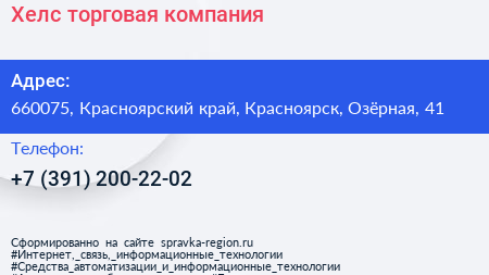 Хелс, торговая компания по адресу 660075, Красноярский край, Красноярск, Озёрная, 41 в дальнейшем Организация, размещена в следующих категориях: