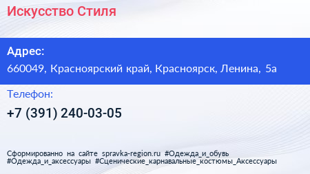 Искусство Стиля по адресу 660049, Красноярский край, Красноярск, Ленина, 5а в дальнейшем Организация, размещена в следующих категориях:
