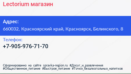 Lectorium, магазин по адресу 660032, Красноярский край, Красноярск, Белинского, 8 в дальнейшем Организация, размещена в следующих категориях: