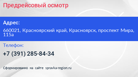 Предрейсовый осмотр по адресу 660021, Красноярский край, Красноярск, проспект Мира, 115а в дальнейшем Организация, размещена в следующих категориях: