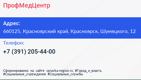 ПрофМедЦентр по адресу 660125, Красноярский край, Красноярск, Шумяцкого, 12 в дальнейшем Организация, размещена в следующих категориях:
