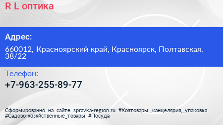 R-L, оптика по адресу 660012, Красноярский край, Красноярск, Полтавская, 38/22 в дальнейшем Организация, размещена в следующих категориях: