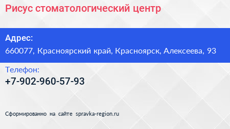 Рисус, стоматологический центр по адресу 660077, Красноярский край, Красноярск, Алексеева, 93 в дальнейшем Организация, размещена в следующих категориях: