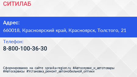 СИТИЛАБ по адресу 660018, Красноярский край, Красноярск, Толстого, 21 в дальнейшем Организация, размещена в следующих категориях: