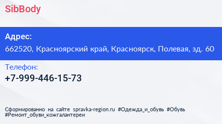 SibBody по адресу 662520, Красноярский край, Красноярск, Полевая, зд. 60 в дальнейшем Организация, размещена в следующих категориях: