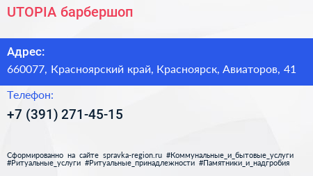 UTOPIA, барбершоп по адресу 660077, Красноярский край, Красноярск, Авиаторов, 41 в дальнейшем Организация, размещена в следующих категориях: