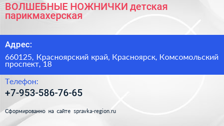 ВОЛШЕБНЫЕ НОЖНИЧКИ, детская парикмахерская по адресу 660125, Красноярский край, Красноярск, Комсомольский проспект, 18 в дальнейшем Организация, размещена в следующих категориях: