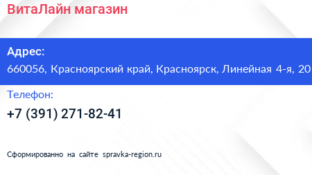 ВитаЛайн, магазин по адресу 660056, Красноярский край, Красноярск, Линейная 4-я, 20 в дальнейшем Организация, размещена в следующих категориях: