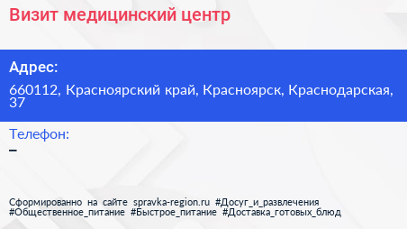 Визит, медицинский центр по адресу 660112, Красноярский край, Красноярск, Краснодарская, 37 в дальнейшем Организация, размещена в следующих категориях: