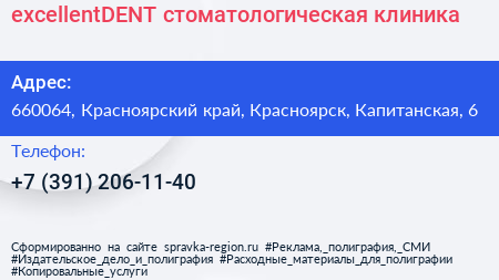 excellentDENT, стоматологическая клиника по адресу 660064, Красноярский край, Красноярск, Капитанская, 6 в дальнейшем Организация, размещена в следующих категориях:
