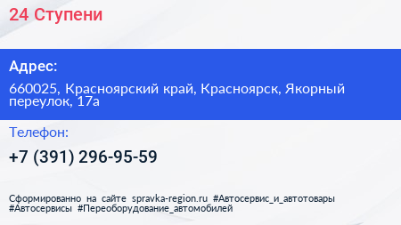 24 Ступени по адресу 660025, Красноярский край, Красноярск, Якорный переулок, 17а в дальнейшем Организация, размещена в следующих категориях: