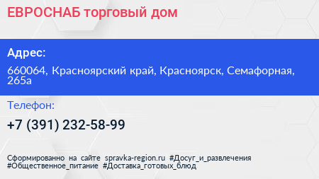 ЕВРОСНАБ, торговый дом по адресу 660064, Красноярский край, Красноярск, Семафорная, 265а в дальнейшем Организация, размещена в следующих категориях: