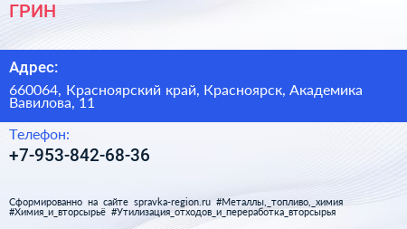 ГРИН по адресу 660064, Красноярский край, Красноярск, Академика Вавилова, 11 в дальнейшем Организация, размещена в следующих категориях: