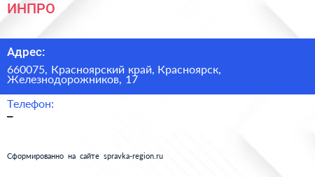 ИНПРО по адресу 660075, Красноярский край, Красноярск, Железнодорожников, 17 в дальнейшем Организация, размещена в следующих категориях: