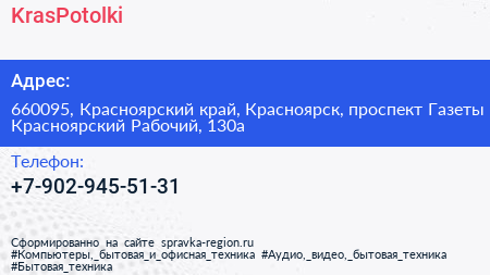 KrasPotolki по адресу 660095, Красноярский край, Красноярск, проспект Газеты Красноярский Рабочий, 130а в дальнейшем Организация, размещена в следующих категориях:
